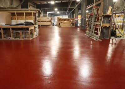 We use a polyaspartic/polyurea blend that is 4-5x more durable than your standard epoxy coating, making it perfect for industrial spaces with plenty of daily wear and tear. The average epoxy floor lasts years, so you don’t have to worry about re-doing your floors every so often.